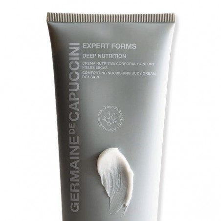 Deep Nutrition Expert Forms es un tratamiento corporal nutritivo de alta eficacia que aporta confort inmediato, mejora la hidratación y ayuda a reparar zonas cutáneas secas o estresadas.
