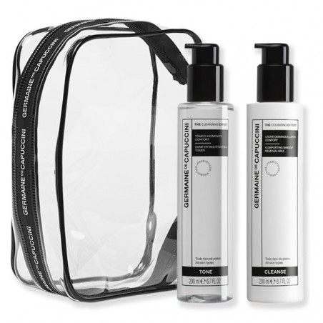 Dúo Limpieza: Leche Desmaquillante Confort + Loción Hidratante Confort The Cleasing Expert Germaine de Capuccini es un tratamiento de limpieza facial. Ideal para pieles sensibles o con tendencia a la sequedad que buscan un ritual diario eficaz, respetuoso y sensorial.