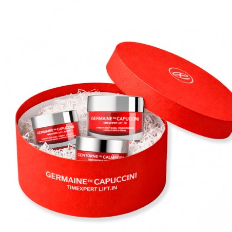 Pack Firmeza Global Timexpert Lift (In) Germaine de Capuccini es un tratamiento facial diseñado para mejorar la firmeza de la piel, redefinir el óvalo facial y suavizar los signos visibles del envejecimiento. Este pack combina productos de la línea Timexpert Lift (In), formulados para aportar efecto tensor y mejorar la elasticidad cutánea.