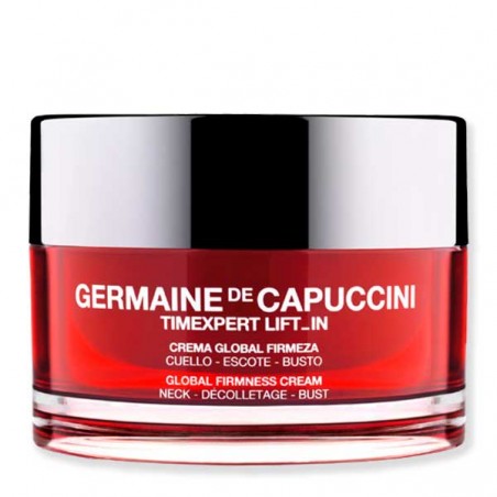 La Crema Tenso-Reafirmante Cuello, Escote y busto de Germaine de Capuccini Timexpert Lift In es una crema especialmente diseñada para el cuello,escote y busto ya que la piel de estas zonas es más frágil que la del rostro. La Crema reafirmante de cuello y escote de Germaine de Capuccini preserva la producción de colágeno en la piel reforzando la matriz interna de soporte y rejuveneciendo la frágil epidermis del cuello y del escote. En solo 3 semanas esta crema facial efecto lifting tensa la piel distendida del cuello, escote y busto quedando mucho más firme. Además tiene un alto poder nutritivo.