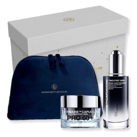 Germaine de Capuccini lanza de nuevo el Pack Navidad 2025 Crema Pro 60+ Germaine de Capuccini. Es un tratamiento facial pensado para las pieles maduras de más de 60 años. Esta crema facial nutritiva trata los signos esenciales de las pieles maduras, la sequedad y la falta de confort. La combinación perfecta para proporcionar a las pieles maduras capacidad de autodefensa de la piel reparando las agresiones que causan el envejecimiento cutáneo.