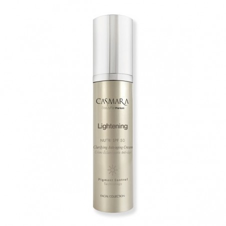 Clarifying Antiaging Cream Lightening Casmara es una crema facial antimanchas, despigmentante y antiedad. Cron protección solar SPF 50, esta crema antimanchas elimina o suaviza las manchas y evita su aparición; a la vez que combate de un modo global el fotoenvejecimiento y los signos de la edad de un modo tratante y preventivo. Aporta un halo de perfección al rostro desde la primera aplicación. La Innovadora fórmula de esta crema antimanchas de textura fluida y rápida absorción repara, aclara, protege, ilumina y combate la aparición de los signos del envejecimiento, unificando el tono de la piel y aportando intensa luminosidad al rostro desde la primera aplicación.