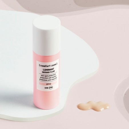 Luminant Defense Fluid Comfort Zone es un fluido protector solar que protege tu piel cada día de los efectos daniños de los rayos UV. Luminant Defense Fluid es el aliado perfecto para defender tu piel de los rayos UVA y UVB, la contaminación urbana y ayudar a prevenir la formación de manchas.