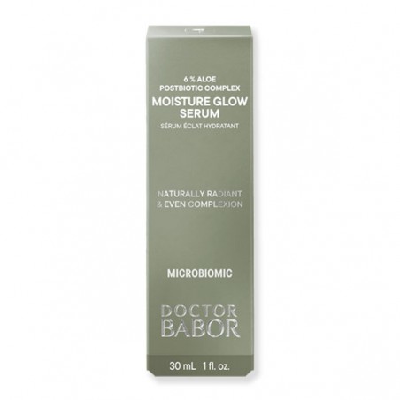 Moisture Glow Serum Microbiomic Doctor Babor es un sérum hidratante de rápida absorción que ayuda a mejorar la luminosidad de la piel, suavizar su textura y reforzar la barrera cutánea. Su fórmula con ácido hialurónico, aloe vera y complejo postbiótico aporta hidratación intensa y favorece una piel más equilibrada y confortable.