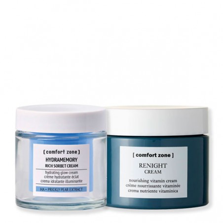 Pack día y noche Comfort Zone es una rutina de cuidado facial para el día y para la noche que nutre en profundidad durante la noche y mantiene la piel hidratada y luminosa durante el día. Ofrece una acción antioxidante mientras duermes.