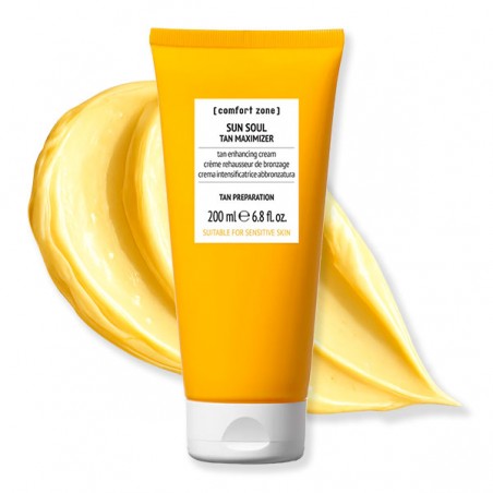 Tan Maximizer Sun Soul Comfort Zone es una crema-gel facial y corporal diseñada para preparar la piel antes de la exposición solar y potenciar un bronceado más intenso, uniforme y duradero. Su fórmula avanzada estimula el proceso natural de pigmentación de la piel, ayudando a conseguir un tono más bonito en menos tiempo.