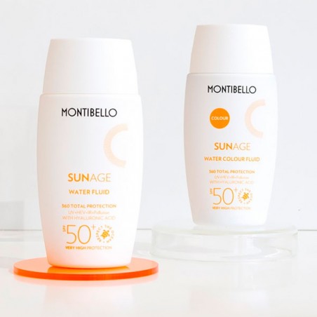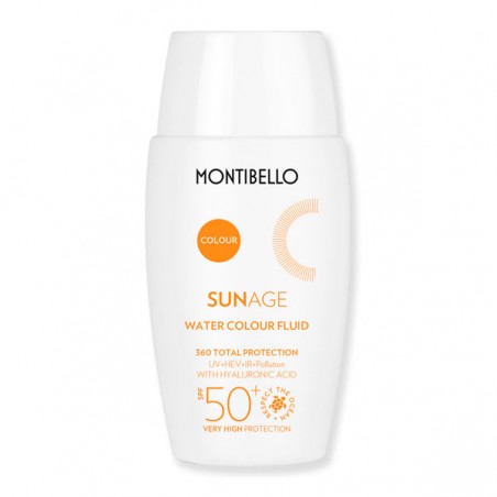 Water color fluid spf50+ Sunage Montibello es un protector solar de muy alta protección UVB y UVA SPF50+, ultraligero con color. Proporciona a la piel una cobertura natural y un efecto unificador y buena cara. Indicado para todo tipo de pieles y/o altamente fotosensibles. Gracias a su fórmula enriquecida con ácido hialurónico, hidrata y repara la piel del daño solar.